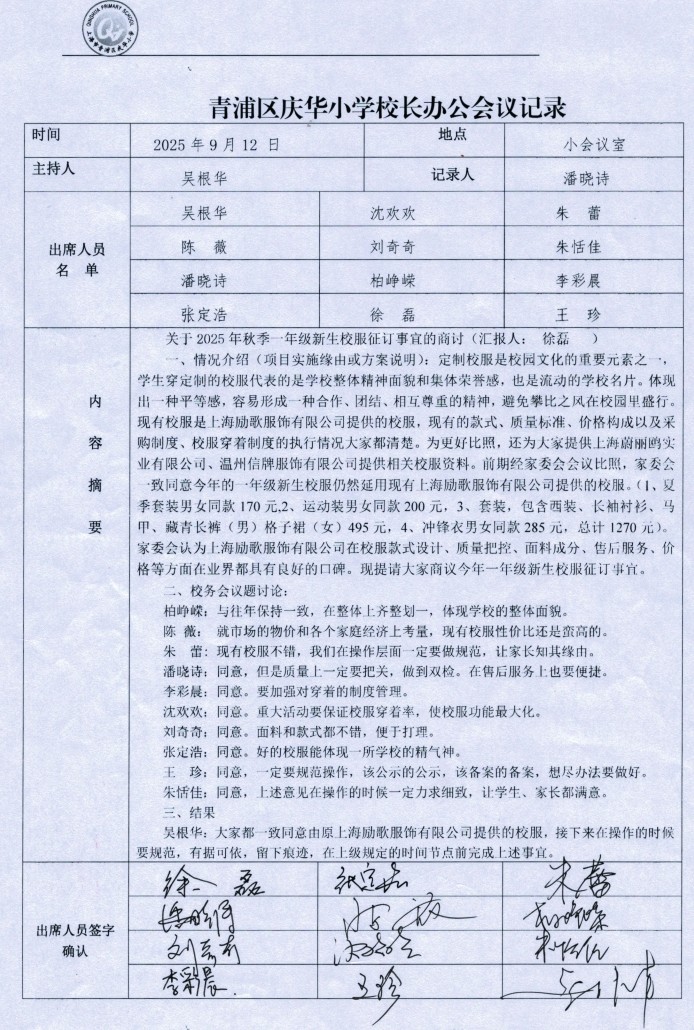 2025-1庆华小学一年级新生校服征订家委会会议