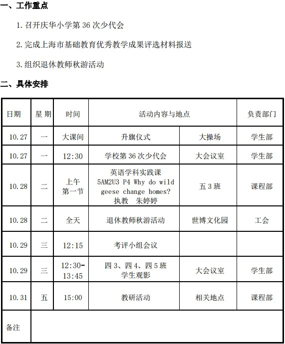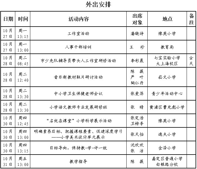 2025学年第一学期第7周学校工作、教师外出及看护安排