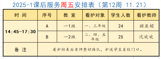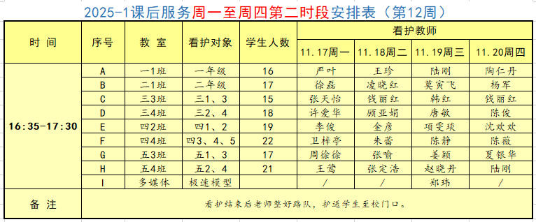 2025学年第一学期第12周学校工作、教师外出及看护安排