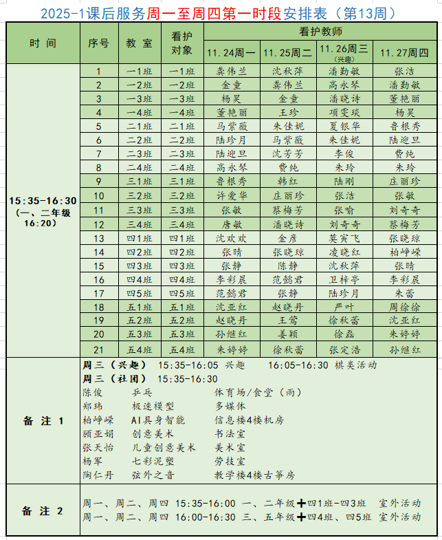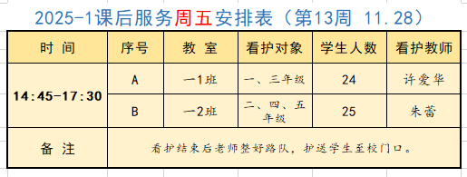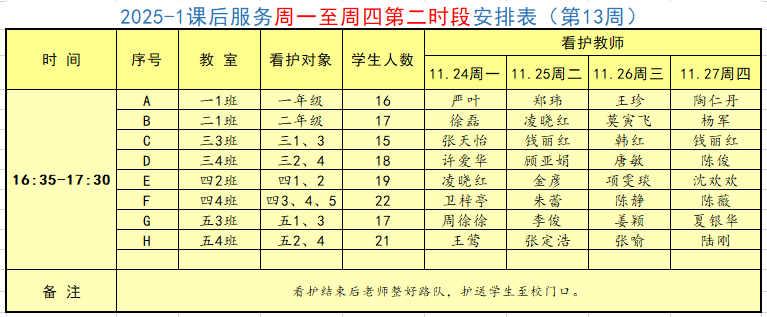 2025学年第一学期第13周学校工作、教师外出及看护安排