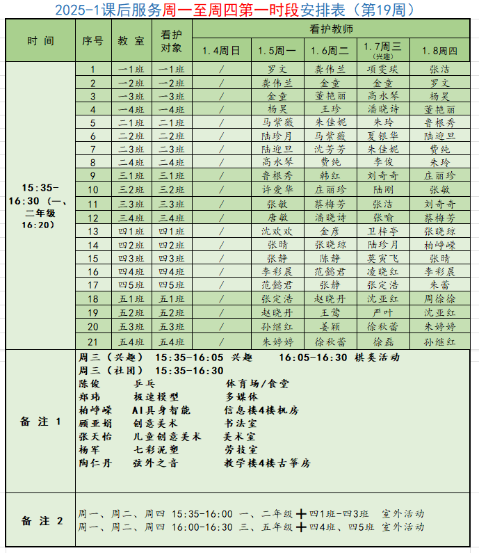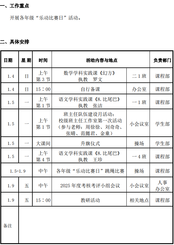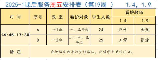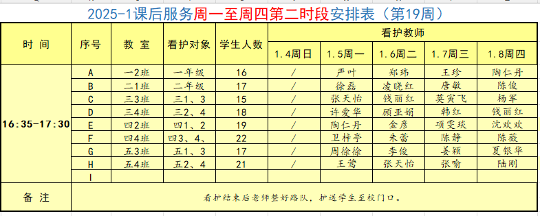 2025学年第一学期第19周学校工作、教师外出及看护安排