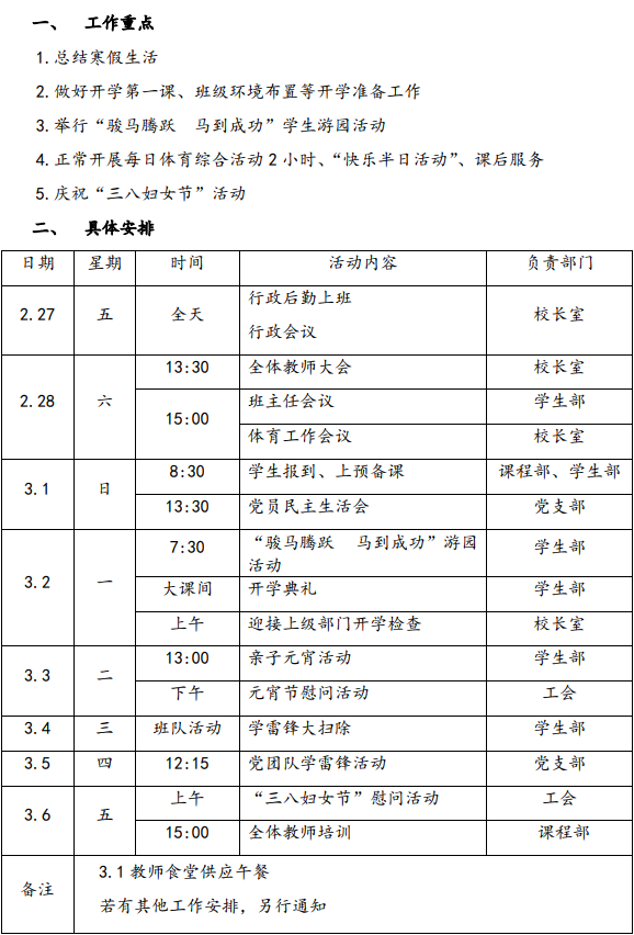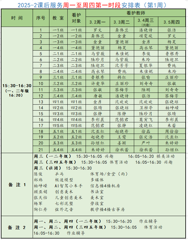 2025学年第二学期第1周学校工作、教师外出及看护安排