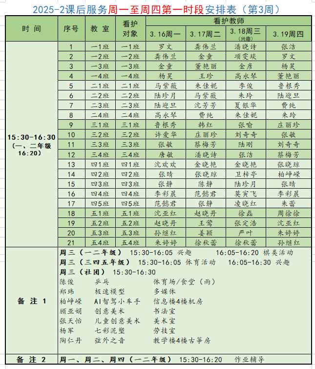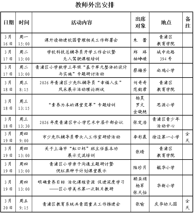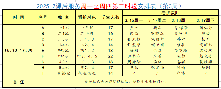 2025学年第二学期第3周学校工作、教师外出及看护安排